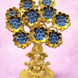 Lord Ganesha Under Evil Eye Tree – Golden Spiritual Protection Sculpture