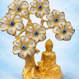 Evil Eye Golden Buddha Under Floral Tree – Spiritual Home Decor