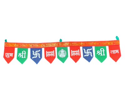 – Design: Alternating colored flags with auspicious symbols like – (Om), Swastika, Shubh, Laabh, and Lord Ganesha